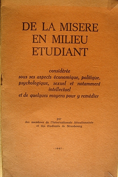 Toate analizele şi studiile întreprinse asupra mediului studenţesc au neglijat până aici esenţialul. Ele nu depăşesc niciodată punctul de vedere al specializărilor universitare (psihologie, sociologie, economie) şi rămân deci fundamental eronate. Toate comit ceea ce Fourier numea deja o zăpăceală metodică „deoarece ea poartă regulat spre chestiunile primordiale”, ignorând punctul de vedere de ansamblu al societăţii moderne. Fetişismul faptelor maschează categoria esenţială iar detaliile omit totalitatea. Se spune totul despre această societate, cu excepţia faptului că ea este una a mărfii şi a spectacolului. Punerea în spectacol a reificării din cadrul capitalismului modern impune fiecăruia un rol în pasivitatea generalizată. Studentul nu scapă acestei legi. El se bucură de un rol provizoriu, care nu face decât să-l pregătească pentru rolul definitiv pe care îl va asuma, ca element pozitiv şi conservator, în funcţionarea sistemului marşand. Nimic altceva decât o iniţiere. Această iniţiere regăseşte, magic, toate caracteristicile iniţierii mitice. Ea rămâne în întregime ruptă de realitatea istorică, individuală şi socială. Studentul este o fiinţă scindată între un statut prezent şi unul viitor, net separate şi a căror limită nu poate fi depăşită mecanic. Conştiinţa lui schizofrenică îi permite izolarea într-o „societate iniţiatică”, îl înşală asupra viitorului său şi îi produce încântare vizavi de unitatea mistică care îi oferă un prezent ferit de istorie. Resortul răsturnării adevărului oficial, adică economic, este foarte uşor de demascat: realitatea studenţească este greu de privit în faţă. Într-o „societate a abundenţei”, statutul actual al studentului este sărăcia extremă. Originari din peste 80% din păturile al căror venit este superior celui al unui muncitor, 90% dintre ei dispun de un venit inferior celui al unui simplu salariat. Mizeria studentului rămâne dincoace de mizeria societăţii spectacolului, de noua mizerie a noului proletariat. Într-o epocă în care o parte tot mai mare a tineretului se eliberează treptat de prejudecăţile morale şi de autoritatea familială pentru a intra cât mai degrabă în relaţii de exploatare deschisă, studentul se menţine la toate nivelele într-o „minoranţă prelungită”, în iresponsabilitate şi docilitate. Dacă criza sa juvenilă tardivă îl opune cât de cât familiei sale, el acceptă fără comentarii să fie tratat drept copil de diversele instituţii care îi administrează viaţa sa cotidiană. Colonizarea diverselor sectoare ale practicii sociale nu face decât să găsească în mediul studenţesc expresia ei cea mai scandaloasă. Transferul asupra studenţilor a întregii cunoştinţe rele sociale maschează mizeria şi servitutea tuturor. Dar motivele care întemeiază dispreţul nostru pentru student sunt de un cu totul alt ordin. Ele nu privesc atât mizeria sa reală, cât complezenţa sa faţă de toate mizeriile, propensiunea sa nesănătoasă spre a consuma fericit din alienare, în speranţa că, în faţa lipsei generale de interes, asta ar putea cel puţin interesa lipsa sa particulară. Exigenţele capitalismului modern fac în aşa fel încât majoritatea studenţilor vor fi pur şi simplu mici cadre (adică echivalentul a ceea ce era, în secolul al XIX-lea, funcţia de muncitor calificat). În faţa caracterului mizerabil, uşor de presimţit, al acestui viitor mai mult sau mai puţin apropiat care îl va „despăgubi” pentru mizeria ruşinoasă a prezentului, studentul preferă să se întoarcă spre prezent şi să îl decoreze cu prestigii iluzorii. Compensarea însăşi este prea lamentabilă pentru a ne ataşa de ea; ziua de mâine nu va fi mai roză iar studentul se va scufunda în mod fatal în mediocritate. De aceea el se refugiază de pe-acum într-un prezent ireal trăit. Sclav stoic, studentul se crede cu atât mai liber cu cât toate lanţurile autorităţii în leagă. Ca şi noua sa familie, Universitatea, el se consideră a fi fiinţa cea mai „autonomă” când, de fapt, el ţine în mod direct şi concomitent de cele două sisteme cele mai puternice ale autorităţii sociale: familia şi statul. El este copilul lor ordonat şi recunoscător. Urmând aceeaşi logică a copilului supus, el participă la toate valorile şi mistificările sistemului şi le concentrează în el. Ceea ce la angajaţi sunt iluzii impuse, la el devine ideologie interiorizată şi vehiculată de masa viitorilor mici funcţionari. Dacă mizeria socială de demult a produs sistemele de compensare cele mai grandioase din istorie (religiile), mizeria marginală a studentului nu a găsit consolare decât în imaginile cele mai ponosite ale societăţii dominante, în repetiţia burlescă a tuturor produselor sale alienate. Recoltând puţin prestigiu în fărâme de la Universitate, studentul este încă mulţumit că este student. Prea târziu. Învăţământul mecanic şi specializat pe care îl primeşte este tot atât de profund degradat (faţă de vechiul nivel al culturii generale burgheze) pe cât este propriul său nivel intelectual în momentul în care accede la el, şi asta pentru simplul fapt că realitatea care domină toate astea, sistemul economic, cere o producţie masivă de studenţi inculţi şi incapabili de a gândi. Că Universitatea a devenit o organizare – instituţională – a ignoranţei, că „înalta cultură” se dizolvă în ritmul producţiei în serie de profesori, că toţi aceşti dascăli sunt nişte cretini care ar provoca hohotele de râs ale oricărui public de liceu, toate astea studentul le ignoră şi continuă să-şi asculte maeştrii respectuos, cu voinţa conştientă de a-şi pierde orice sprit critic pentru a putea astfel să se cuminece mai eficient din iluzia mistică de a fi devenit un „student”, adică cineva care se ocupă serios