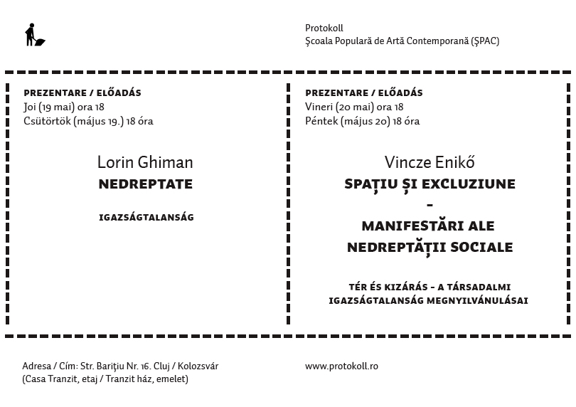 Vineri (20 mai) ora 18 Vincze Enikő: Spațiu și excluziune - manifestări ale nedreptății sociale