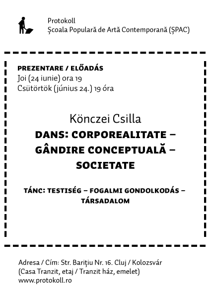 Joi (23 iunie) ora 19 Könczei Csilla: Dans: corporealitate - gândire conceptuală - socieatate